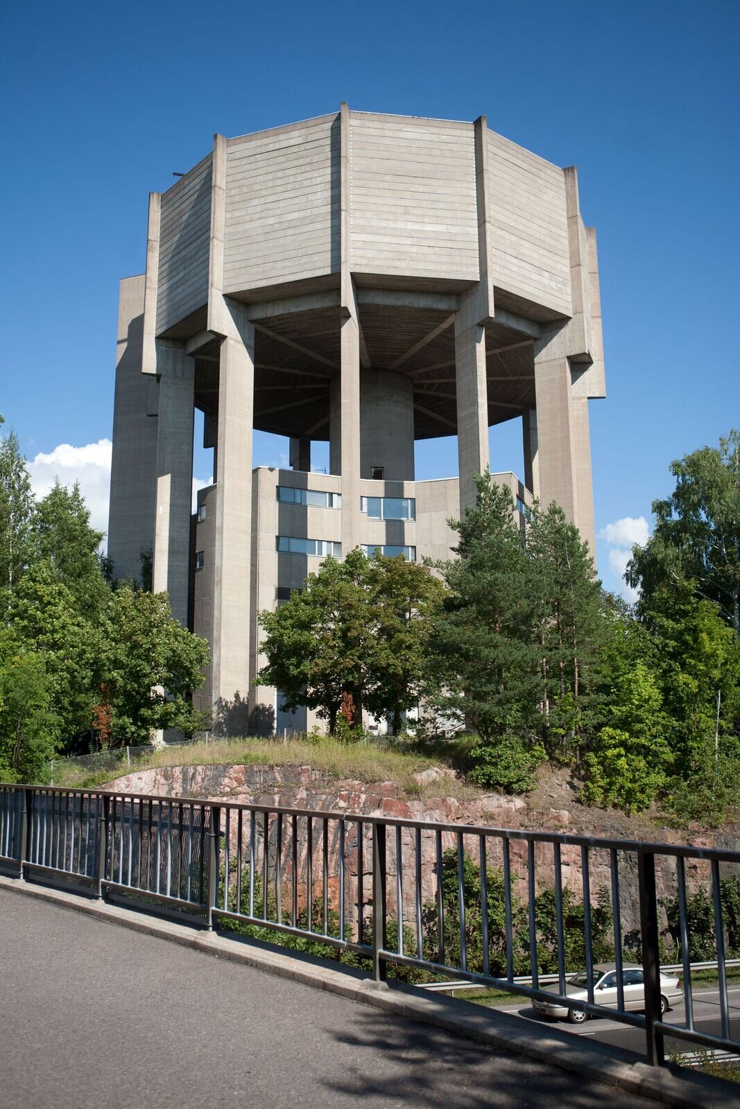 Otaniemen vesitorni valmistui vuonna 1971. Paikan valinta ja rakennuksen suunnittelu oli annettu Otaniemen alueen suunnittelijan, Alvar Aallon arkkitehtitoimiston tehtäväksi. Espoo halusi sijoittaa vesitornin alle myös huippulämpökeskuksen ja toimistorakennuksen. Aalto ei pitänyt ratkaisua maisemallisesti hyvänä, mutta suostui kuitenkin suunnittelemaan monitoimirakennuksen vesitornin yhteyteen.